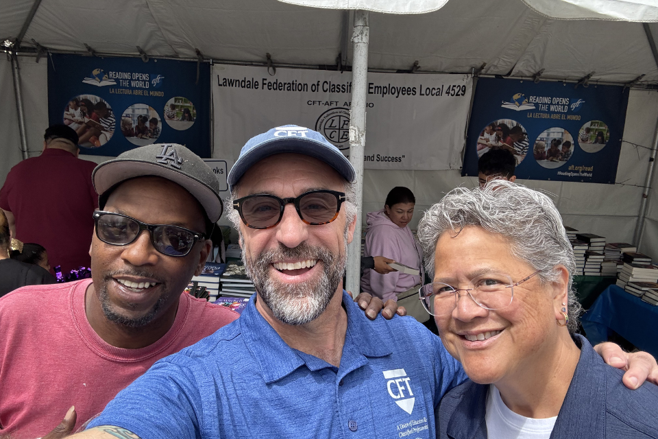 Carl Williams, the president of both the Lawndale Federation of Classified Employees and the Council of Classified Employees, felt nervous about putting on the large Reading Opens the World event where they gave out 4,000 free books. But AFT Local 4529 did it anyway, as well as participating in the Lawndale Youth Parade the same day.