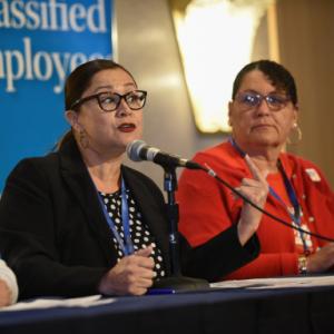 On Sunday morning, CFT Secretary Treasurer Luukia Smith followed up with a short history of classified in the state federation and specifically what led to the CFT rebranding “A Union of Educators and Classified Professionals.” The nearly two-decade attempt to give classified employees more visibility in the CFT came to fruition this year.